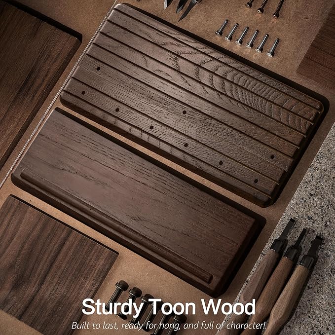 - [PREMIUM WOOD] Crafted from sturdy acacia wood , this key hanger wall mount is built to last. Durable and resistant to wear, it features a clear, attractive grain that brings natural warmth to your space. The fine craftsmanship makes it a stylish yet functional upgrade for your aesthetic house decor. A perfect choice for everyday use!