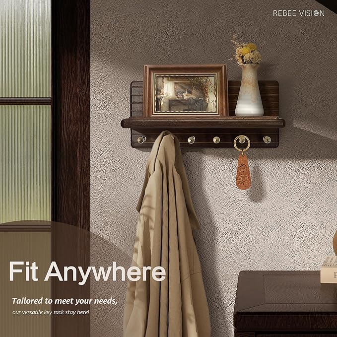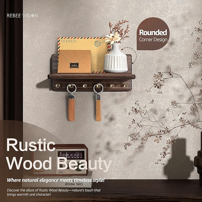 - [VERSATILE FOR ANY ROOM] Perfect for multiple spaces and convenient for daily storage, this wall key holder blends seamlessly with rustic vibe. Mount it by your entryway for keys, in the bathroom for essentials, or in your living room as a stylish floating shelf. Its room decor aesthetic makes it both practical and decorative for everyday use.