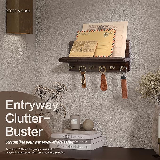 - [RUSTIC DECOR] Add timeless charm to your home with this key and mail holder for wall in black walnut. Designed with a rustic aesthetic, this key organizer enhances your room decor and farmhouse wall decor, adding character to any space. Whether styled in your entryway or paired with living room decor, it elevates your farmhouse style beautifully.