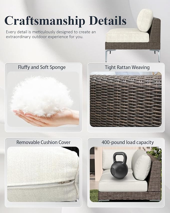 - PRACTICAL & STYLISH DESIGN: Made of durable PE rattan and high-quality sturdy metal frames, this furniture set is constructed for stability and balance. Hand-woven rattan blends with metal elements, presenting light and modern elegance. Seamlessly integrating practicality with exquisite style.