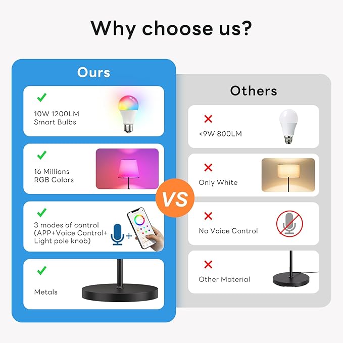 - Voice & App Control: The floor lamp for living room included a smart bulb compatible with Alexa, Siri, Google assistant Voice & App Control, eliminating the need to travel far to turn the light on or off. Simply command and you'll have the perfect lighting experience. The BRmesh app also allows for even more features, including remote control, grouping, DIY scene presets, music synchronization, and timers.
