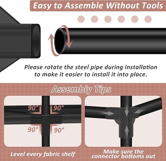 - 【Easy Assembly】Portable closet wardrobe features uniformly sized steel pipes for quick setup. The steel pipe and plastic joints are swivel-connected, requiring less effort to assemble with clear instructions. In addition, we include extra parts for added peace of mind.