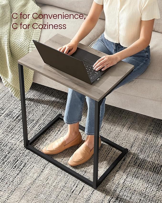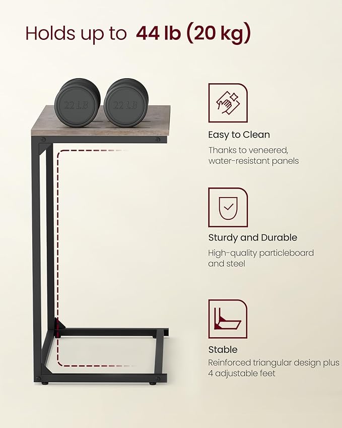 VASAGLE Set of 2 C Shape End Tables, Small Coffee Tables for Couch Or Sofa, Industrial Side Tables in Living Room, Bedroom, 13.8 x 21.7 x 26 Inches, Greige and Classic Black UZH2504036