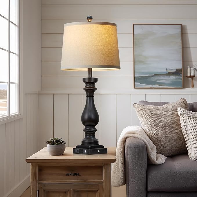 - 【Farmhouse Design】 Luxeflow end table lamps features a classic resin body with linen shades, adding a touch of farmhouse vintage charm to any living room, bedroom, or office. Perfect for nightstands, end tables, and bedside tables, these nightstand lamps elevate your home decor with their sophisticated design