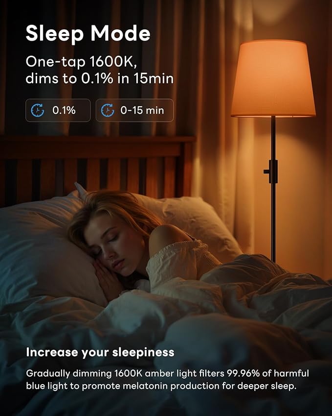 - Unique 1600K sleep-enhancing color temperature: The morden floor lamp feature unique1600K color temperature is the lower among similar LED bulbs, emitting only 0.04% of the ultra-low blue light spectrum. This helps melanopsin receptors in the retina release melatonin, alleviating eye fatigue and signaling the brain to prepare for sleep and ensures flicker-free operation at any brightness, ensuring peace of mind for your eyes.