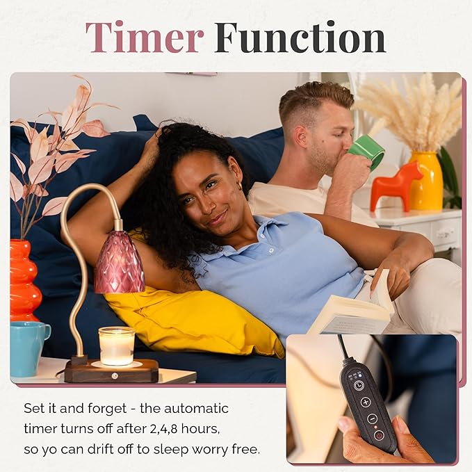 - Premium Candle Warmer with Genuine Rose Quartz Crystals - Now with a Limited Holiday $7 Coupon A flameless, smoke-free way to enjoy candles safely. The top-down warming design melts candles evenly while illuminating real Rose Quartz crystals for a soft, loving, soothing glow.