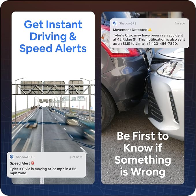 - INSTANT SAFETY & SECURITY ALERTS Receive real-time alerts for speeding, crash detection, harsh driving, towing, curfew violations, device removal, and geofence breaches. Stay informed through instant app or SMS notifications—protect your drivers, vehicles, or loved ones at all times.