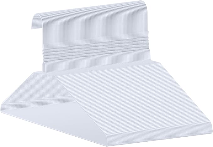 - Elegant Design: Smooth white finish, adding elegance to your wardrobe. Keep your clothes in good shape, without leaving creases or wrinkles, and will not scratch clothes. The non slip hangers fit all kinds of garments, such as shirts, T-shirts, pants, skirts, suits, dresses, coats, jackets, etc