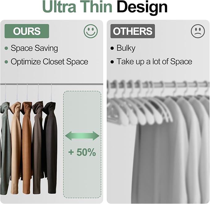 - Space Saving: The compact structure design of the ultra slim heavy duty clothes hangers optimize the storage space of the wardrobe to efficiently organize your clothes and keep your closet tidy and orderly