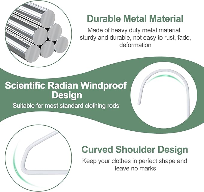 - Sturdy Metal Hangers: The hangers are made of heavy duty metal materials, solid and stable structure provides reliable load-bearing for hanging heavy clothes, not easy to bend and break, long-lasting