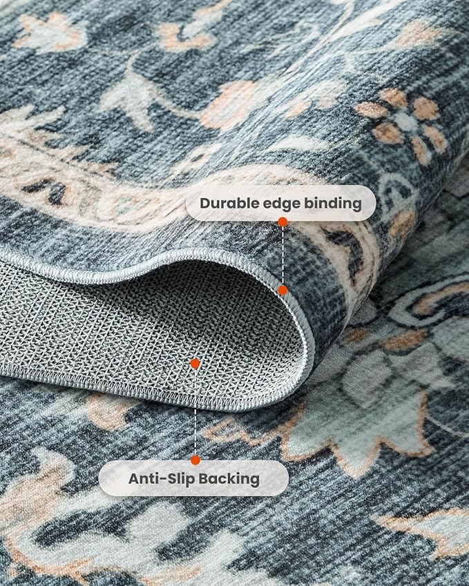 AMADA HOMEFURNISHING 6x9 Area Rugs, Blue Low-Profile Washable Rug with Non-Slip Backing & Durable Edge Binding, Vintage Rugs for Living Room, Bedroom, Dinning Room