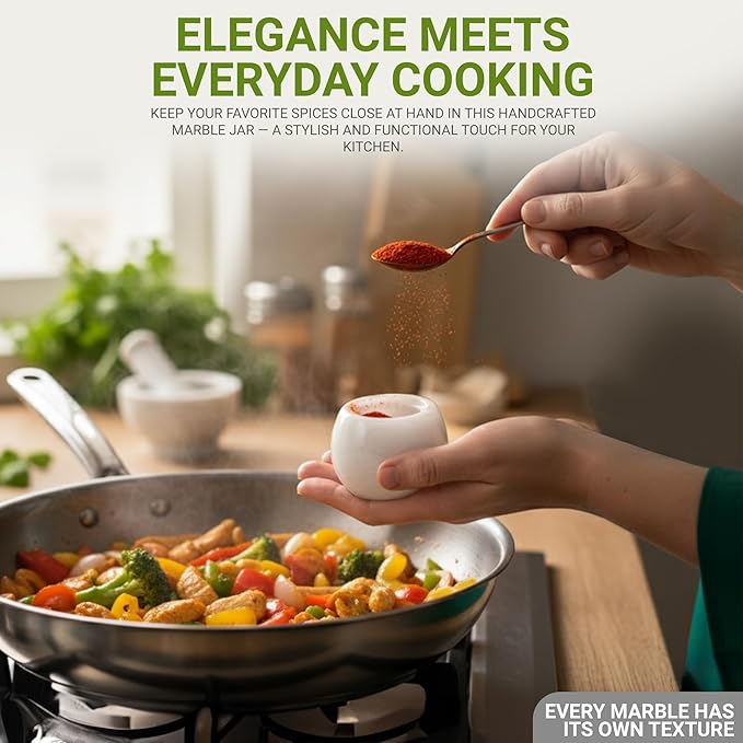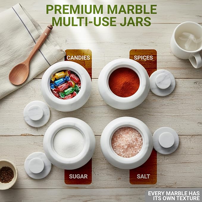 - Multi-Purpose Kitchen and Home Use: Beyond a simple spice container, this elegant marble jar doubles as a candy dish, small items holder, or even a decorative accent for your vanity or coffee table. Its natural marble look complements both modern and classic interiors effortlessly.