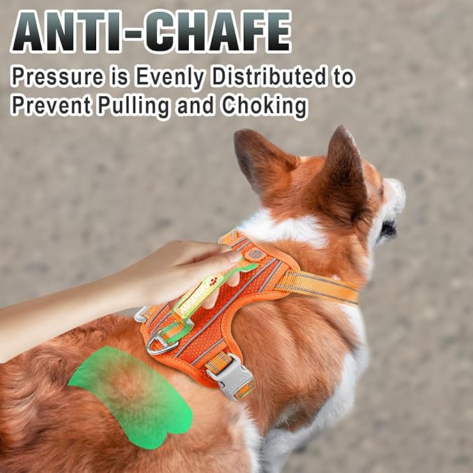 BARKBAY No Pull Dog Harness Large Reflective Dog Harness with Front Clip and Easy Control Handle for Walking Training Running with ID tag Pocket(Orange,XS)