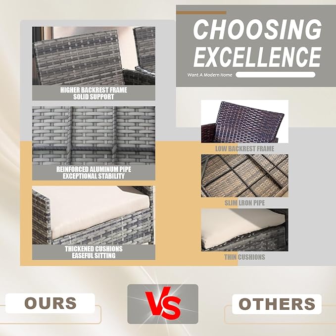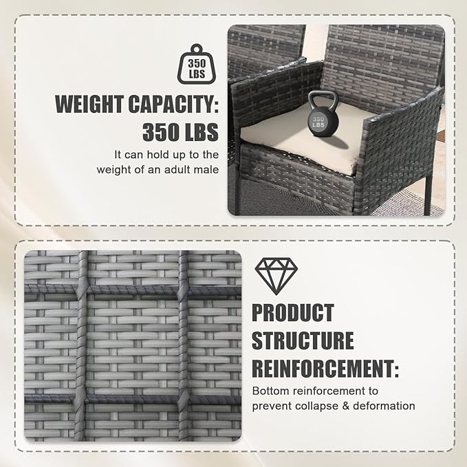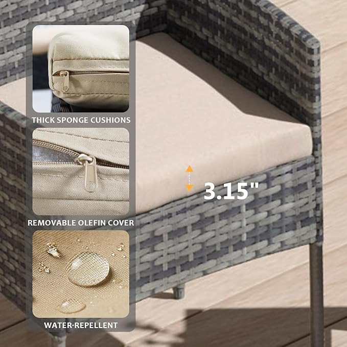 - 【🛋️Convenient & Comfortable】Our Garden Conversation Sets are equipped with sturdy, non-slip feet that ensure stability and protect your floors. With a 3-inch thick sponge seat cushion and backrest, it offers ample breathability and comfort, perfect for relaxing even if you sit for a long time