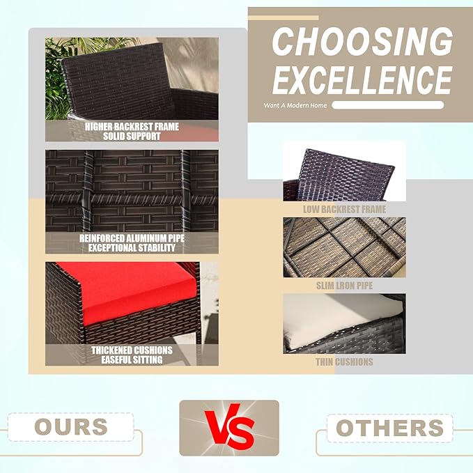 - 【🛋️Convenient & Comfortable】Our Garden Conversation Sets are equipped with sturdy, non-slip feet that ensure stability and protect your floors. With a 3-inch thick sponge seat cushion and backrest, it offers ample breathability and comfort, perfect for relaxing even if you sit for a long time