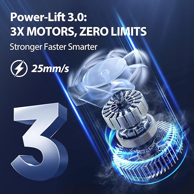 - 【Power-Lift 3.0: Motor Upgraded for Max Strength & Speed】Experience lightning-fast lifting speed and ultra-smooth movement with our triple motor system—more power, better balance, and quieter performance for maximum productivity.