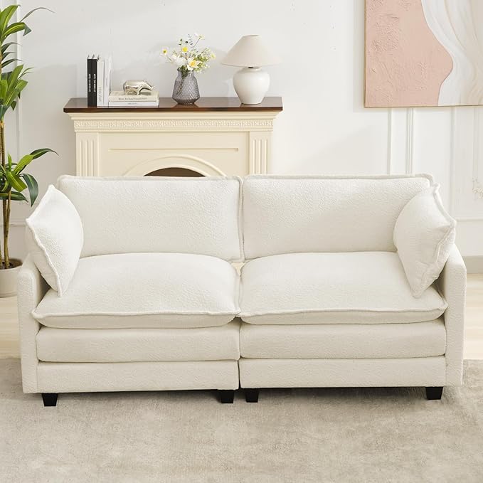 ROWHY Modular Loveseat Sectional Sofa, 78" Upholstered Loveseat, 2 Deep Seat Sofa Couch with 2 Throw Pillows for Small Space, Modern Comfy Cloud Couch for Living Room, Chenille, Beige