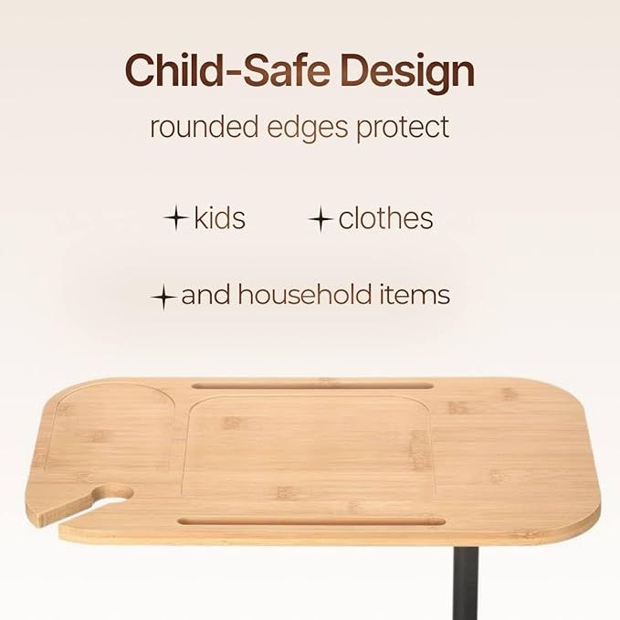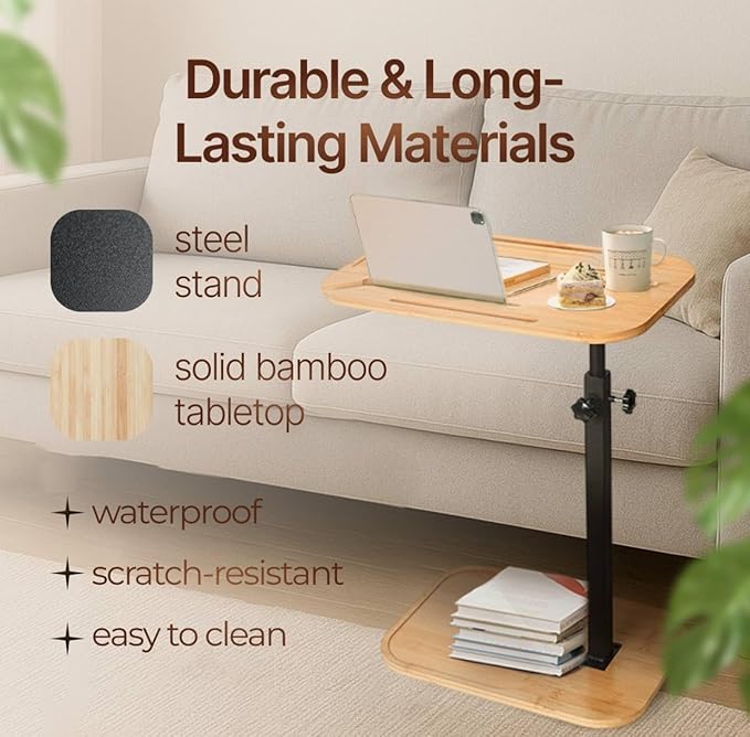 - 【Height-Adjustable TV Tray】Standing at 30 inches tall, this couch side table table is thoughtfully designed to rise above the armrest of your sofa or the edge of your bed, creating a comfortable and ergonomic workspace wherever you need it. The spacious tabletop provides ample room for your laptop, books, coffee, snacks, or even décor like a small lamp or plant.