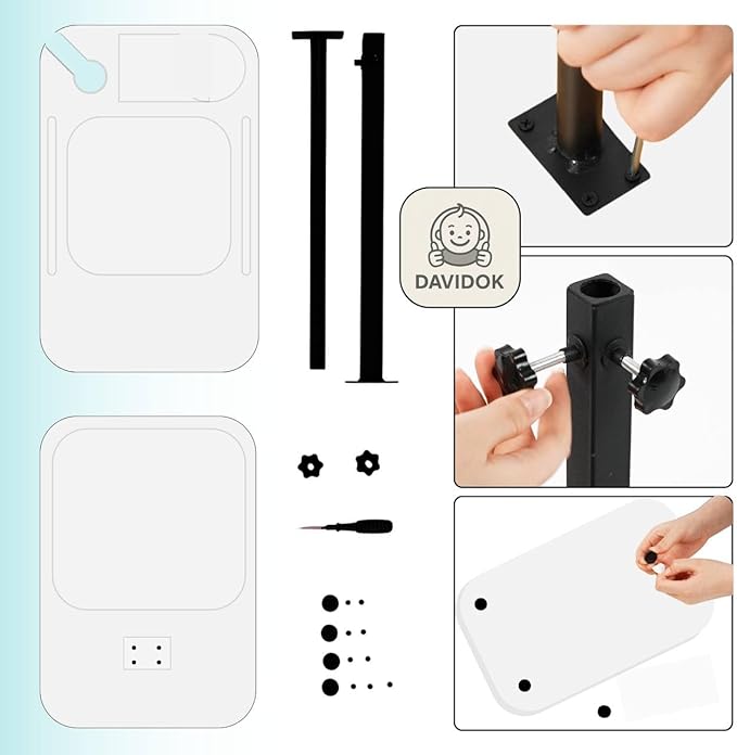 DAVIDOK C-Shaped Sofa End Table, Adjustable Height Couch Side Table with Device Slot, White Color with Black Metal Stand, Couch Table for Living Room, Bedroom