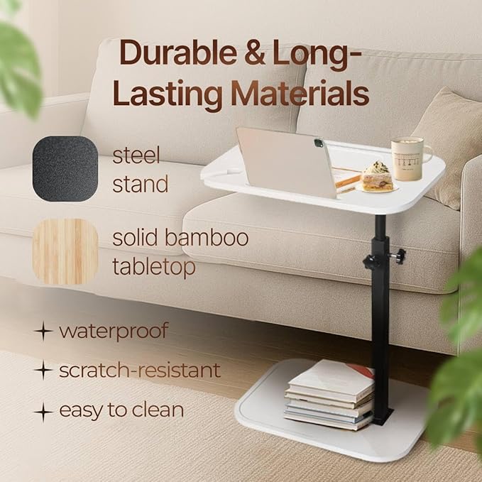 - 【Height-Adjustable TV Tray】Standing at 30 inches tall, this couch side table table is thoughtfully designed to rise above the armrest of your sofa or the edge of your bed, creating a comfortable and ergonomic workspace wherever you need it. The spacious tabletop provides ample room for your laptop, books, coffee, snacks, or even décor like a small lamp or plant.