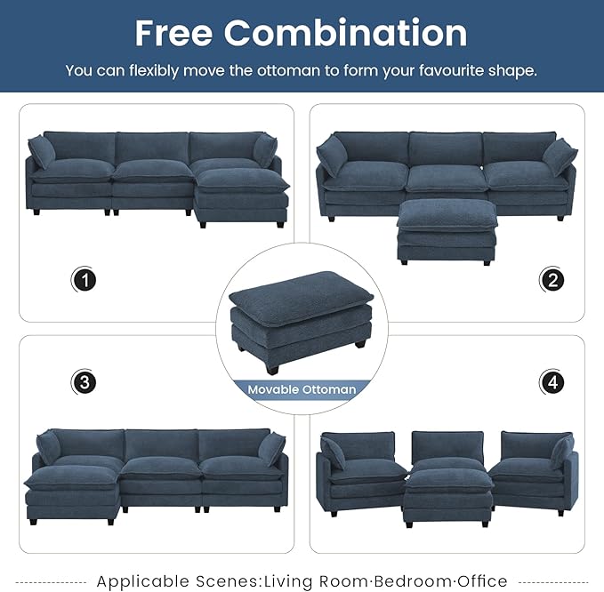 - Flexible Modular Combination: This home sofa living room can be combined into different forms according to your actual needs. You can choose between an l shape couch or a u shaped couch, and the ottomans can be moved to any shape you want