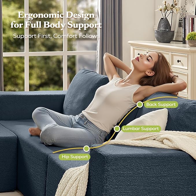 - Certified Premium Comfort: Sink into cloud-like luxury with our CertiPUR-US certified foam cushions, featuring support that cradles your body without sagging. Unlike ordinary modular sofas, this sofa couch features high-density foam in both the seat cushions and backrests, perfectly balancing softness with long-lasting support to ensure year-round comfort that endures. Whether you're lounging, reading, or napping, every seat delivers ergonomic relaxation you can trust