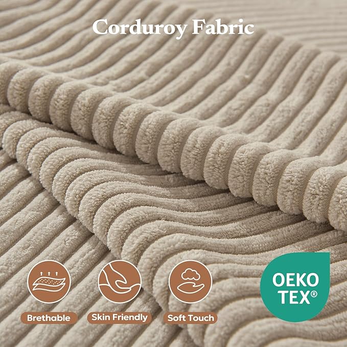 - Corduroy Fabric: Indulge in the textured luxury of our premium corduroy upholstery, where exceptional softness meets practical elegance. The distinctive ridged weave creates a visually captivating surface that's remarkably durable while maintaining its refined appearance season after season. Certified by OEKO-TEX Standard 100 for safety and breathability, this versatile fabric combines inviting tactile warmth with timeless style for your living space