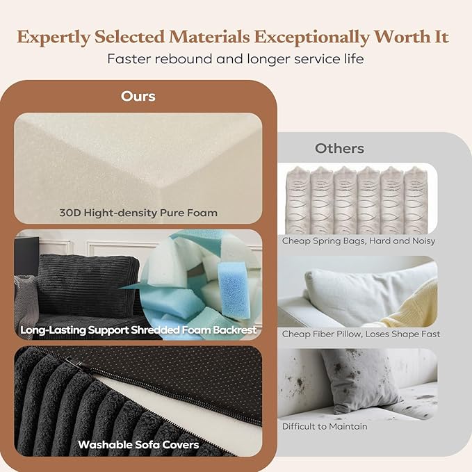 - Certified Premium Comfort: Sink into cloud-like luxury with our CertiPUR-US certified foam cushions, featuring support that cradles your body without sagging. Unlike ordinary modular sofas, this sofa couch features high-density foam in both the seat cushions and backrests, perfectly balancing softness with long-lasting support to ensure year-round comfort that endures. Whether you're lounging, reading, or napping, every seat delivers ergonomic relaxation you can trust