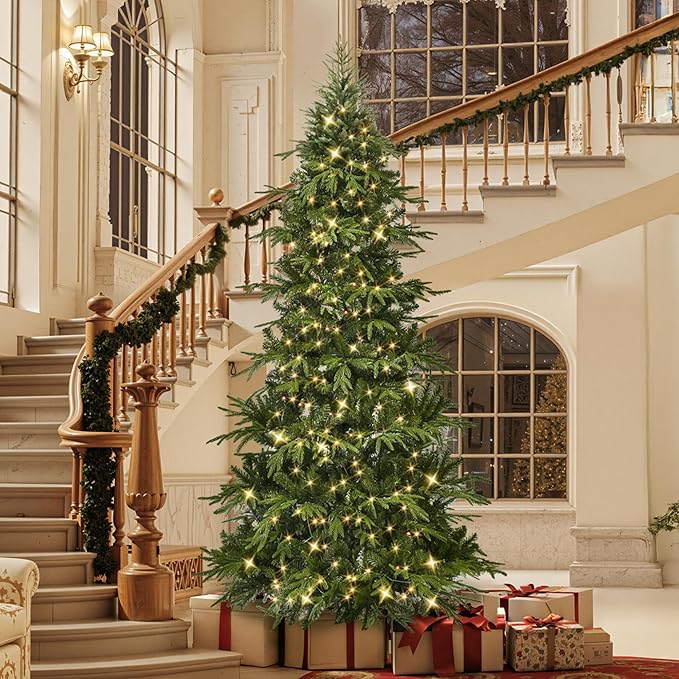 - 【Full & Realistic Look】Made with 2519 branch tips combining PE and PVC, this lighted Christmas tree looks lush, lifelike, and full from every angle. The PE tips add a natural, fresh-cut look that won’t easily fade or lose shape, while also being fire-resistant for peace of mind