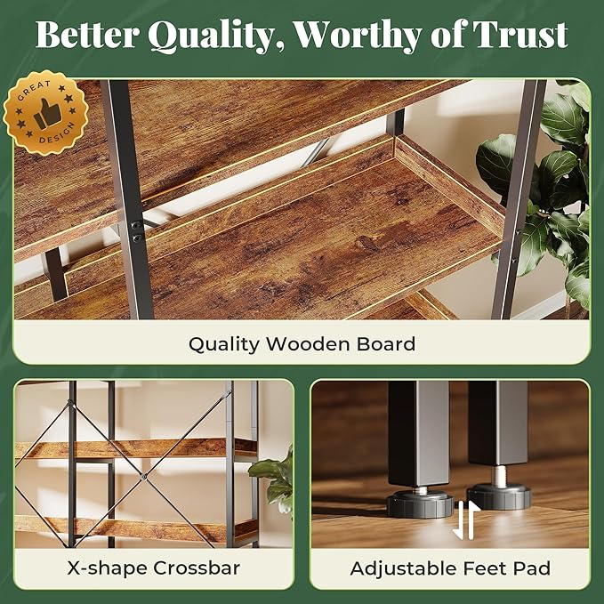 - 【Fits Anywhere in Your Home】Bedroom, office, living room, or even the kitchen—this 5 shelf bookcase adapts to your needs. Use it as a toy rack in the nursery, a file organizer in your office, or a chic coffee station in your nook. One piece, endless possibilities