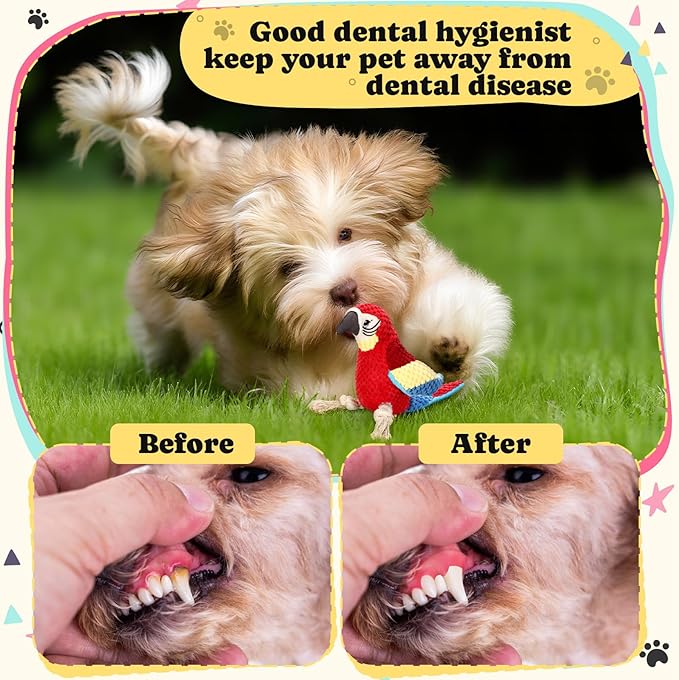 - Vibrant Toys for Endless Fun: this delightful set includes a flamingo and parrot plush squeaky toy, crafted in vibrant colors to captivate your dog's interest and provide countless hours of entertainment; The 2 pack dog chew toys for puppies ensure you're ready for a quick swap to maintain cleanliness, keeping playtime exciting and fresh
