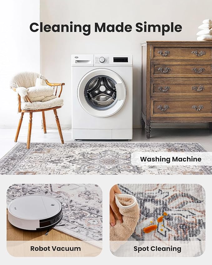 - Machine Washable: The short pile design of the washable rugs is easy to maintain using an upright vacuum or robotic vacuum cleaner. The 6x9 area rugs are also machine-washable for fast and hassle-free cleaning. After washing, a low-temperature iron can help to keep the large area rug’s surface flat and smooth.