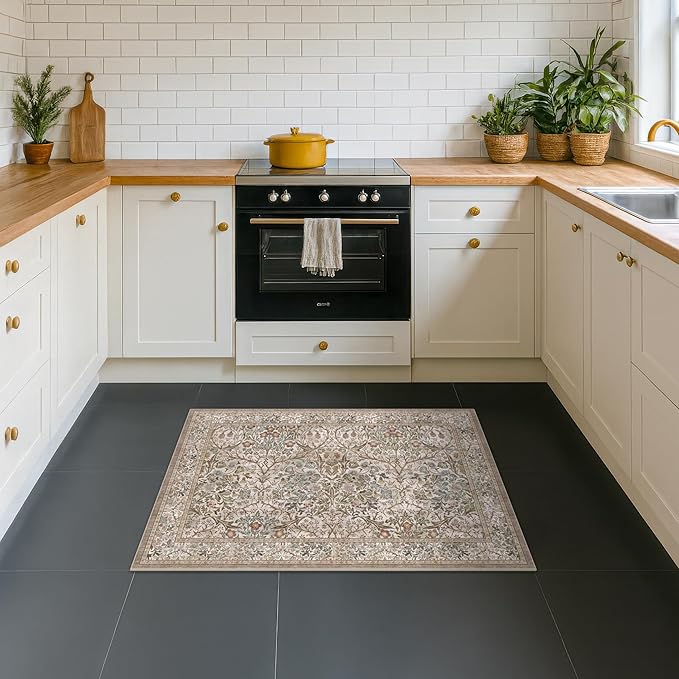 - Vintage Botanical Elegance: Echoing the refined artistry of 19th-century textile traditions, this area rug showcases a graceful botanical design brimming with timeless charm. Bright gold and brown, yellow and orange red bloom across the surface in delicately balanced symmetry, forming a serene floral tapestry. Inspired by Victorian-era aesthetics, the rug’s intricate vines and oriental motifs evoke a fresh, spring-like feel, infusing your home with elegance, lightness, and sophistication