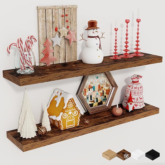 - EASY TO ASSEMBLE: Upgraded hidden mounting bracket aligns ensure a sleek floating effect, making the shelves secure. Instructions, a magnetic level, drywall anchors, and screws are included, making it easy to mount these rustic shelves gap-free in under 8 minutes