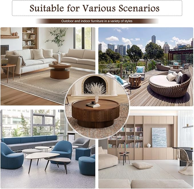 - 30.7''D×12.59''H Classic Circular Design: This round drum coffee table adopts the common circular design in home decoration, with a circular tabletop and base. And it is a presentation effect with a large top and a small bottom. While providing large storage space, it also offers stable base support. The minimalist design makes this coffee table more suitable for placement in every room of the home.