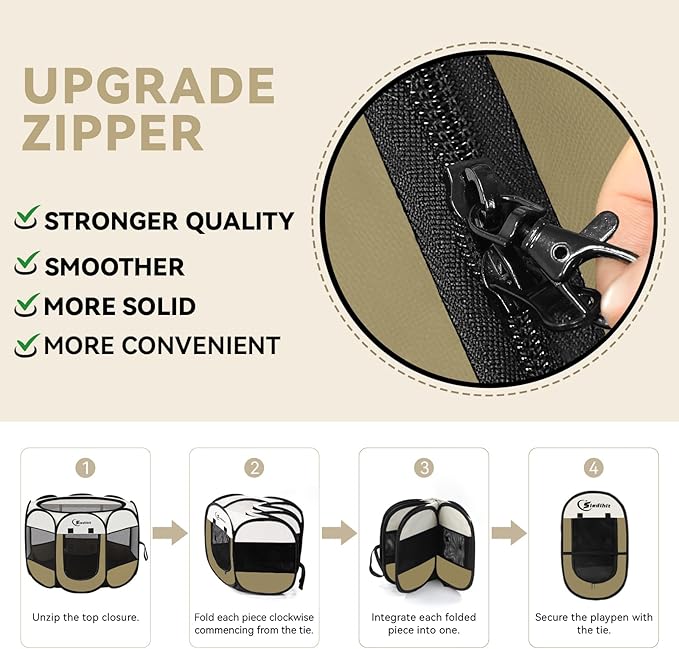 - 【Easy to use】The pet playpen on the side of this pet pen can be easily rolled up and pasted, making it easy for your pet to get in and out of the pet pen. Close the door and keep your pet safely inside. The detachable semi-mesh zipper top can be easily removed for indoor use and closed for outdoor use to provide shade. Make sure your pet is comfortable in any environment.