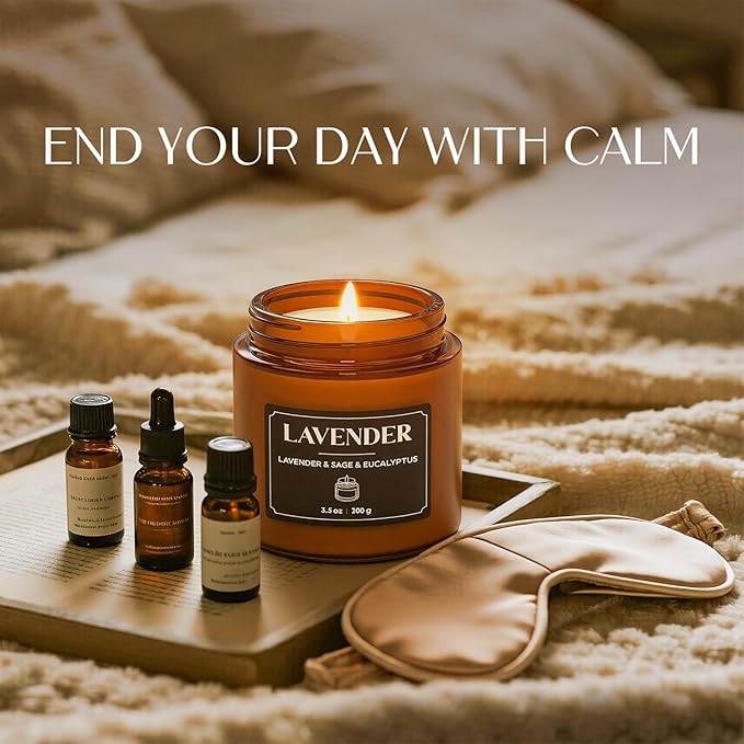 - 【Premium Scented Experience】Crafted with a sophisticated blend of natural aromas, our scented candles create a serene and uplifting atmosphere. The calming floral notes of lavender, clary sage, and eucalyptus help clear the mind, while the soft layers of vanilla, jasmine, and lily bring gentle warmth and elegance to your space.
