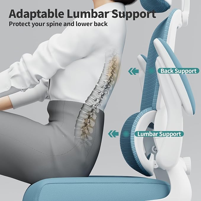 TRALT Office Chair Ergonomic Desk Chair, 330 LBS Home Mesh Office Desk Chairs with Wheels, Comfortable Gaming Chair, High Back Office Chair for Long Hours (Sky Blue)