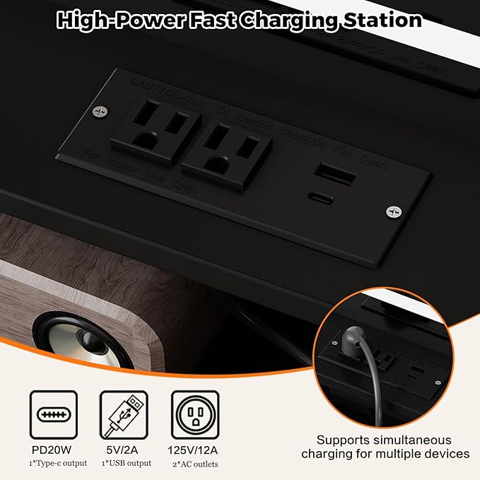 - 【Built-in Power Strip】Upgrade design!This makeup table equipped with a power strip that has 2 standard plug sockets ,1 USB ports and 1 T-C with a 4.9-foot power cord,convenient for the LED lights,hairdryer, curling iron, and charge your phone, tablet, or other electronics.