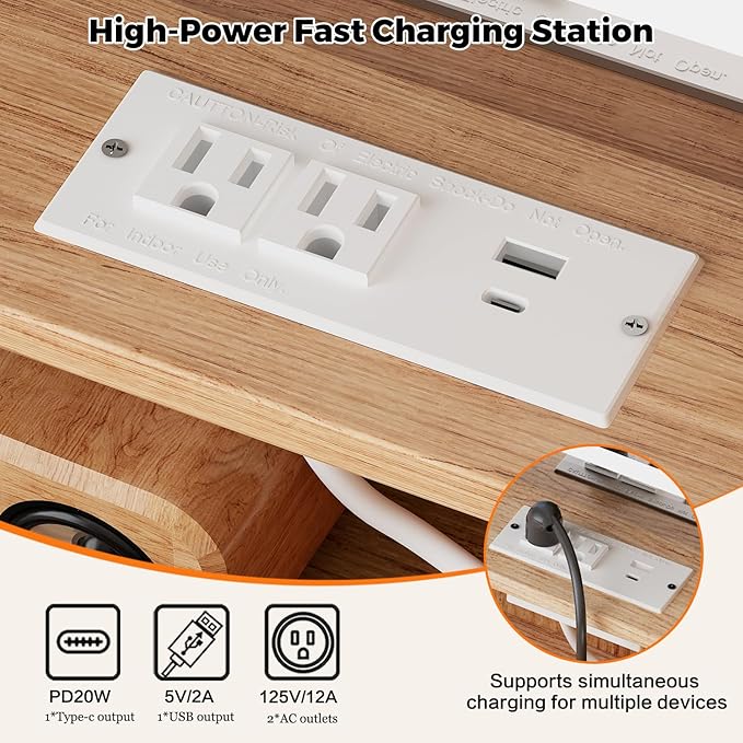 - 【Built-in Power Strip】Upgrade design!This makeup table equipped with a power strip that has 2 standard plug sockets ,1 USB ports and 1 T-C with a 4.9-foot power cord,convenient for the LED lights,hairdryer, curling iron, and charge your phone, tablet, or other electronics.