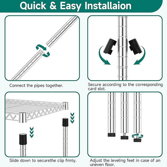 - EFFORTLESS ASSEMBLY: Wave goodbye to the hassle of tools. Simply follow the instructions provided, and you'll have your metal shelving ready in no time, effortlessly combining convenience with simplicity.