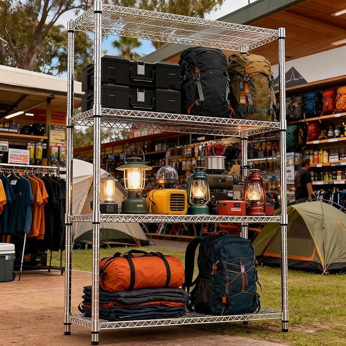 4 Tiers Shelf Metal Storage Shelves 2640 lbs Steel Storage Shelving Utility Shelving Unit Steel Organizer Wire Rack for Home,Kitchen,Office,Garage Chrome 17.7" D x 47.2" W x 70.3" H