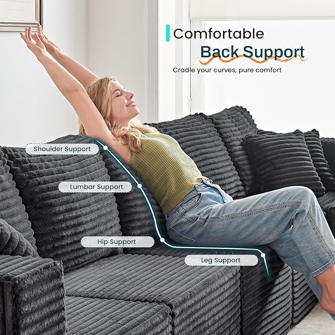 - Breathable Corduroy Fabric: Corduroy couch is ultra-soft against skin, making it a hit with kids and pets. Spills wipe right off, and fur brushes away easily, keeping your sectional sofa looking sharp. The high-resilience foam wraps you in cloud-like softness, perfect for family to lounge without squishing.
