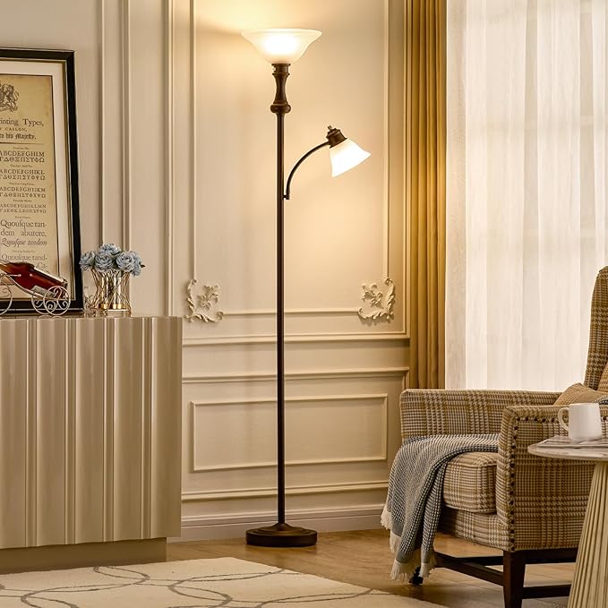 - Adjustable Small Lamp: Our tall lamp for living room corner is specially designed with a small night light. The small night light on the side of floor lamps for bedroom can convert the angle, so you can say goodbye to fixed light. Meet the light needs of different heights and sitting positions. Perfect for reading and working