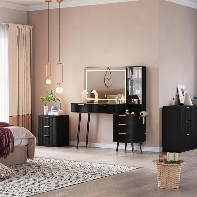 - Material Engineered Wood : Style Modern Fluted Makeup Vanity Desk with Lights