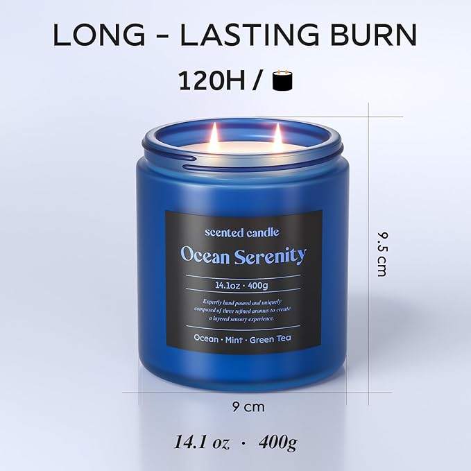 Scented Candles, 14.1 oz Scented Candles for Home, 2 Wicks Blended Scents Aromatherapy Candles for Women and Men, Birthday Gifts for Women (Ocean+Mint+Green Tea)