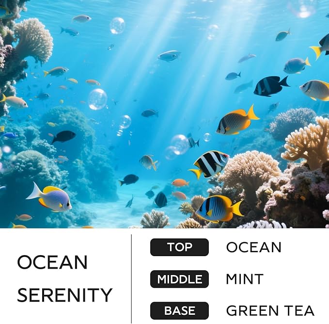 - 【Perfect Fragrance Blend】The crisp freshness of ocean breeze combines with the cooling clarity of mint and the clean vibrance of green tea, creating a fragrance that is both refreshing and revitalizing. This invigorating blend is perfect for transforming your space into a calming retreat filled with energy and clarity.