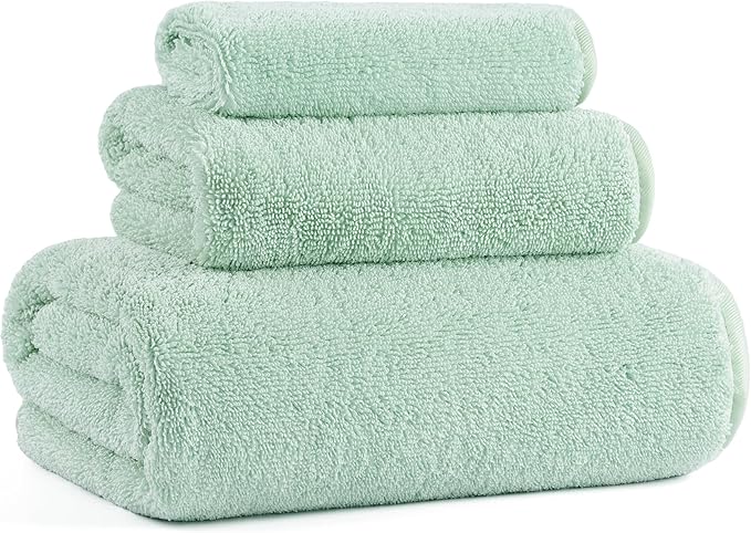 Ring Spun Terry Microfiber Bath Towel Set, 3 Piece, Oversize, Quick Dry, Lint Free, Includes Bath, face, and Hand Towels (Green)