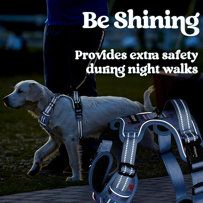 - Control in Multiple Ways: The no-pull dog harness has two metal leash attachment points for various conditions and may be used for a variety of activities like daily walking, jogging, running, trekking, hunting, and training. Furthermore, the ergonomic top handle may be handy for additional training support or carrying assistance
