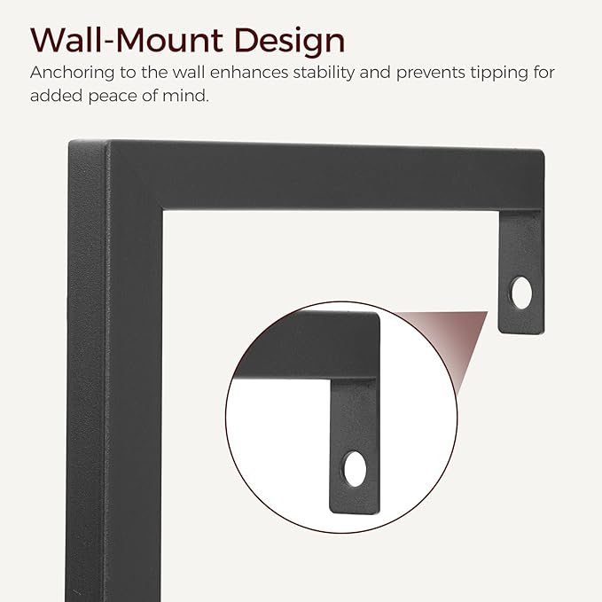 - Sturdy Construction: Built with heavy-duty iron and engineered wood, each tier of this wall shelf is securely fastened with 4 screws for enhanced stability. It supports up to 20 lb per shelf, offering reliable storage for a variety of household items